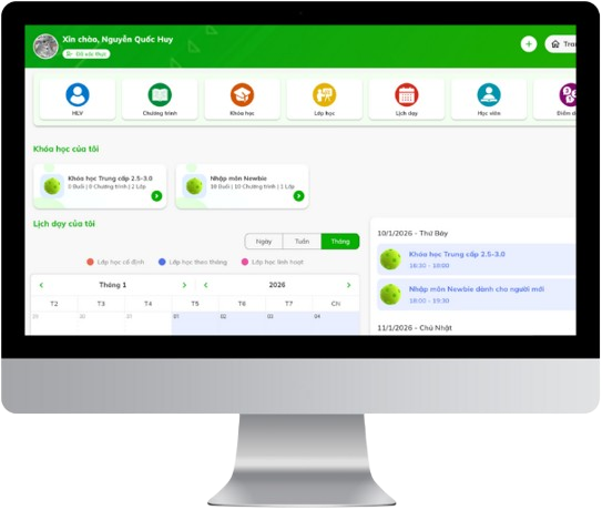 Thiết kế chuyên biệt cho học viện, trung tâm và huấn luyện viên thể thao, đúng với cách vận hành thực tế