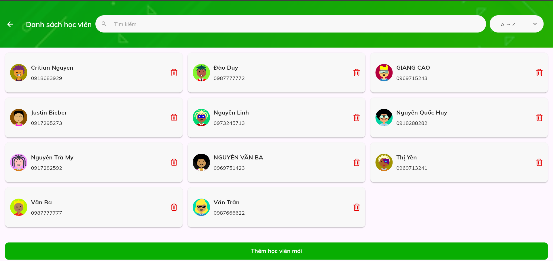 Hình 3. Màn hình quản lý học viên