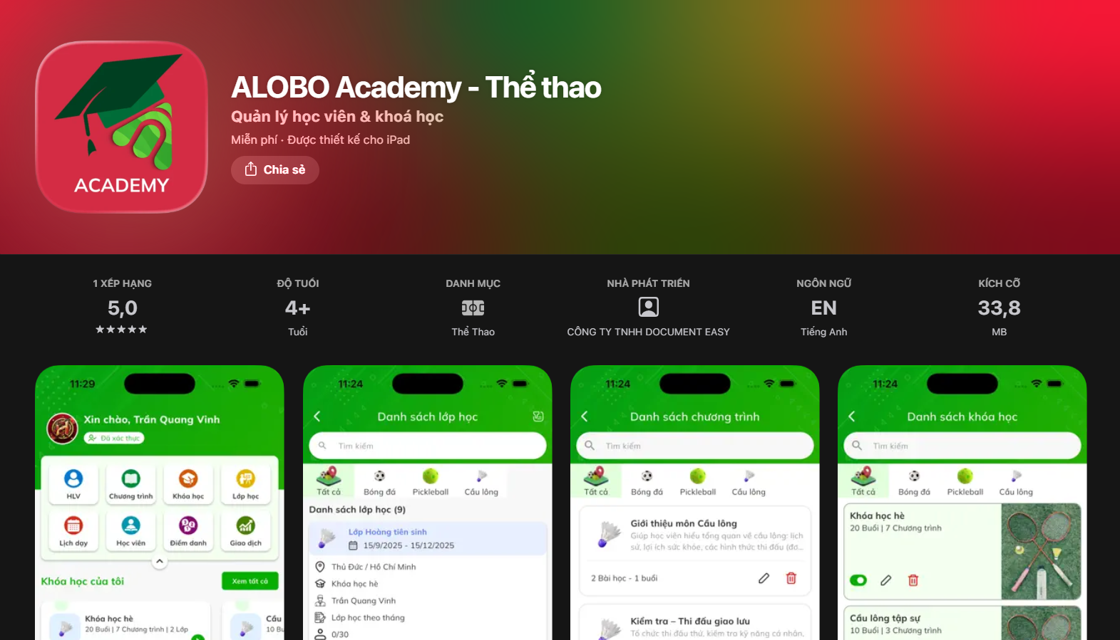 Giữa làn sóng phát triển mạnh mẽ của các bộ môn Pickleball, Cầu lông và Tennis, ALOBO Academy ra đời như một lời giải cho bài toán số hóa quy trình vận hành, giúp các HLV và Chủ trung tâm quản lý lớp học hiệu quả ngay trên thiết bị di động.