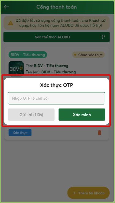 Sau khi hoàn tất liên kết TKNH BIDV lên hệ thống, xin vui lòng liên hệ lại với ALOBO để được kích hoạt tính năng Auto-payment. ALOBO chân thành cảm ơn!